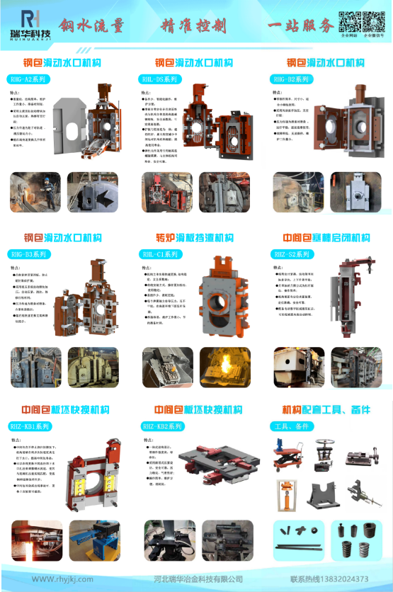轉(zhuǎn)爐出鋼口擋渣系統(tǒng) 鋼包滑動(dòng)水口機(jī)構(gòu) 鋼包吹氬鎖緊機(jī)構(gòu) 中間包快換機(jī)構(gòu) 中間包塞棒機(jī)構(gòu) 電爐擋渣機(jī)構(gòu) 液壓設(shè)備 輔助工具